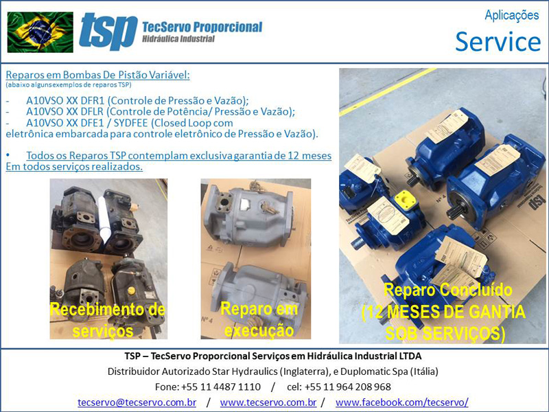Devido a nossa crescente demanda e presença em grandes clientes como Votorantim, Usiminas, Fiat FCA e CNH, ZF group, Mahle goup, Hutchinson, Pilkinton, entre outras. A TSP incorporou a mais completa linha de produtos na sua linha de distribuição e desta forma proporcionamos aos nossos clientes a possibilidade de canalizar em um único fornecedor todo o projeto, fornecimento ou reforma de equipamento relacionado a Automação Hidráulica Industrial.